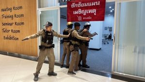 ซักซ้อมวิธีปฏิบัติเมื่อเกิดเหตุการณ์กราดยิง ตามหลัก “หนี ซ่อน สู้ (Active Shooter Training)”