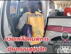 • วันที่ 18 มี.ค.2568 เวลาประมาณ 15.30 น. ขณะที่ ร.ต.ท.บุญส่ง กุลสันเทียะ ร้อยเวรงานจราจร พร้อมด้วย ร.ต.ต.บัญชา คำบุบผา รอง สว.(จร.) สภ.เสม็ด กำลังปฏิบัติหน้าที่อยู่ที่บริเวณ ถนนสุขุมวิท แยกวัดบางเป้ง ต.เสม็ด อ.เมือง จ.ชลบุรี เห็นประชาชนที่ขาไม่ดีกำลังหาทางข้ามถนน จึงได้สอบถามจนทราบว่าจะข้ามถนนไปฝั่งแยกวัดบางเป้ง ร.ต.ท.บุญส่งฯ ขับไปรับประชาชนข้ามถนนสุขุมมายังฝั่งวัดบางเป้ง ทำให้ประชาขนที่ได้รับการช่วยเหลือมีความพึงพอใจ ชื่นชมและขอขอบคุณในการช่วยเหลือครั้งนี้.