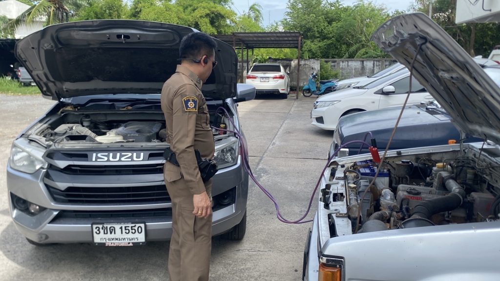 วันที่ 30 ส.ค.2568 เวลาประมาณ 12.00 น. ขณะที่ ร.ต.อ.ปัญญา สียางนอก พร้อมด้วย ด.ต.อวิรุทธิ์ พลลม ขณะกำลังจะออกปฏิบัติหน้าที่ เห็นประชาชนจอดรถเปิดฝากระโปงหน้า อยู่บริเวณด้านหลัง สภ.เสม็ด ต.เสม็ด อ.เมือง จ.ชลบุรี จึงได้เข้าไปสอบถาม พบว่ารถยนต์แบตเตอรี่ไฟหมด ร.ต.อ.ปัญญาฯ และ ด้วย ด.ต.อวิรุทธิ์ฯ จึงได้ทำการพ่วงชาร์จแบตเตอรี่ให้ ทำให้ประชาชนสามารถเดินทางต่อไปได้ ทำให้ประชาชนดีใจที่ได้รับการช่วยเหลือขอขอบคุณในการช่วยเหลือครั้งนี้30