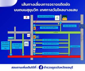 สถานีตำรวจภูธรเสม็ด ขอประชาสัมพันธ์เส้นทางลัด/เส้นทางเลี่ยงการจราจรติดขัด บริเวณถนนสุขุมวิท ช่วงเทศกาลสงกรานต์ 2568 และวันไหลบางแสน 16-17 เม.ย.2568 เพื่อให้ประชาชนผู้ใช้รถใช้ถนนได้รับทราบ ถ้ายังมีข้อสงสัยสามารถโทรสอบถามเพิ่มเติมได้ที่ 038-467-000 หรือ 086-157-5500 ได้ตลอด 24 ชม. ครับ