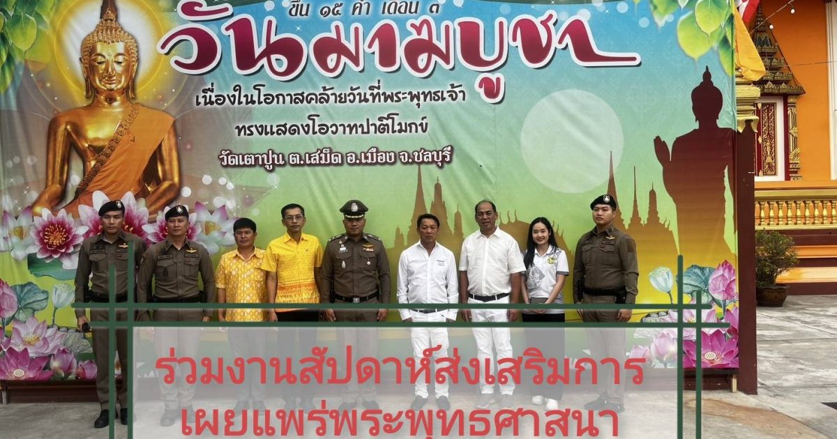 • วันที่ 11 ก.พ.2568 เวลา 18.00 น. พ.ต.อ.ฐนพงศ์ โพธิ์ทิ ผกก.สภ.เสม็ด พร้อมด้วย พ.ต.ท.สุรเชษฐ เอนกศรี รอง ผกก.ป.สภ.เสม็ด , พ.ต.ท.ดนัย เสถียรเขร สวป.สภ.เสม็ด และข้าราชการตำรวจ สภ.เสม็ด ร่วมงาน สัปดาห์ส่งเสริมการเผยแพร่พระพุทธศาสนาเนื่องในวันมาฆบูชา ประจำปีพ.ศ.2568 จังหวัดชลบุรี ณ วัดเตาปูน ต.เสม็ด อ.เมือง จ.ชลบุรี.