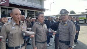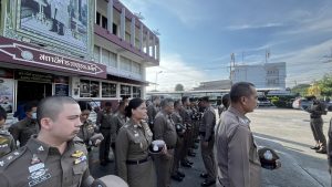 • วันที่ 27 ก.ย.2567 เวลาประมาณ 08.00 น. พ.ต.อ.ฐนพงศ์ โพธิ์ทิ ผกก.สภ.เสม็ด พร้อมด้วย พ.ต.ท.วิโรจน์ แจ่มจำรัส รอง ผกก.สอบสวน สภ.เสม็ด , พ.ต.ท. สุรเชษฐ อเนกศรี รอง ผกก.ป.สภ.เสม็ด , พ.ต.ท.สมัชชา ไมตรี รอง ผกก.สส.สภ.เสม็ด และข้าราชการตำรวจ สภ.เสม็ด ร่วมทำพิธีเคารพธงชาติเนื่องในวันพระราชทานธงชาติไทย 28 กันยายน (Thai National Flag Day) พร้อมกล่าวคำปฏิญาณตนของตำรวจ อุดมคติตำรวจ บทปลงใจ และทำการอบรมชี้แจงแนวทางการปฏิบัติงาน ตรวจทรงผมและการแต่งกาย ณ บริเวณหน้าอาคารที่ทำการสถานีตำรวจภูธรเสม็ด.