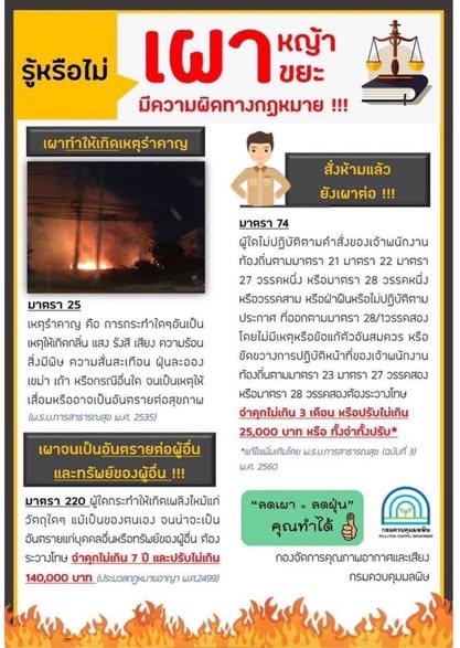 “เตือนอันตรายจากการหญ้าเผาขยะ” และ “มาตราการหยุดฝุ่น PM 2.5”