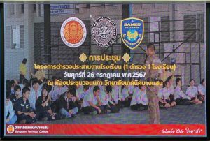 • สั่งการให้ พ.ต.ท.สุรเชษฐ เอนกศรี รอง ผกก.ป.สภ.เสม็ด พร้อมด้วย พ.ต.ท.ดนัย เสถียรเขต สวป.สภ.เสม็ด , พ.ต.ต.สายัณห์ บรรเทากิจ สวป.(ชส.) สภ.เสม็ด พร้อมด้วยข้าราชการตำรวจ สภ.เสม็ด เข้าทำการชี้แจงแนวทางการดำเนินการตาม โครงการตำรวจประสานโรงเรียน 1 ตำรวจ 1 โรงเรียน เพื่อหาทางแก้ไขปัญหายาเสพติด ปัญหาอบายมุข และการแข่งรถบนท้องถนนของนักเรียนนักศึกษา โดยมี นางบัวผา หทัยกิจเกษม ผู้อำนวยการวิทยาลัยเทคนิคบางแสน และคณาจารย์วิทยาลัยเทคนิคบางแสน ให้การต้อนรับและรับฟังชี้แจงแนวทางการดำเนินการและแนวทางการแก้ไขปัญหา ณ ห้องประชุมวอนนภา วิทยาลัยเทคนิคบางแสน ต.ห้วยกะปิ อ.เมืองชลบุรี จ.ชลบุรี