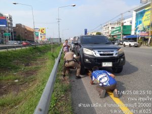 •วันที่ 11 เม.ย.2568 เวลาประมาณ 08.20 น. ร.ต.ท.บุญส่ง กุลสันเทียะ ขณะปฏิบัติหน้าที่ร้อยเวรจราจร ขณะกำลังตรวจการจราจรบน ถ.สุขุมวิท เห็นประชาชนจอดเสียในช่องทางเดินรถช่องขวาสุด บริเวณหน้าบริษัท บสก. ต.เสม็ด อ.เมือง จ.ชลบุรี จึงได้ไปตรวจสอบพบว่ารถยนต์ยางรั่ว ร.ต.ท.บุญส่งฯ จึงได้ติดต่อช่างมาดำเนินการปะยางให้ จนประชาชนเดินทางต่อไปได้ ทำให้ประชาชนที่ได้รับการช่วยเหลือมีความพึงพอใจ ชื่นชมและขอขอบคุณในการช่วยเหลือครั้งนี้.