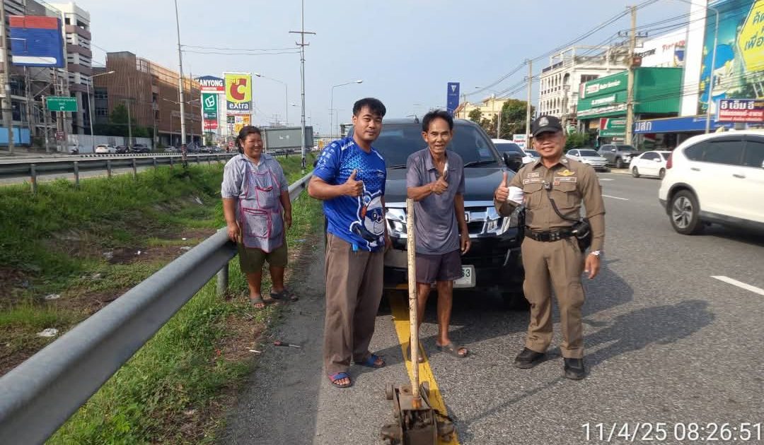 •วันที่ 11 เม.ย.2568 เวลาประมาณ 08.20 น. ร.ต.ท.บุญส่ง กุลสันเทียะ ขณะปฏิบัติหน้าที่ร้อยเวรจราจร ขณะกำลังตรวจการจราจรบน ถ.สุขุมวิท เห็นประชาชนจอดเสียในช่องทางเดินรถช่องขวาสุด บริเวณหน้าบริษัท บสก. ต.เสม็ด อ.เมือง จ.ชลบุรี จึงได้ไปตรวจสอบพบว่ารถยนต์ยางรั่ว ร.ต.ท.บุญส่งฯ จึงได้ติดต่อช่างมาดำเนินการปะยางให้ จนประชาชนเดินทางต่อไปได้ ทำให้ประชาชนที่ได้รับการช่วยเหลือมีความพึงพอใจ ชื่นชมและขอขอบคุณในการช่วยเหลือครั้งนี้.