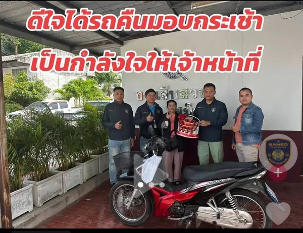 เจ้าของรถดีใจที่ได้รถคืนมอบกระเช้าให้เป็นกำลังใจให้กับตำรวจ