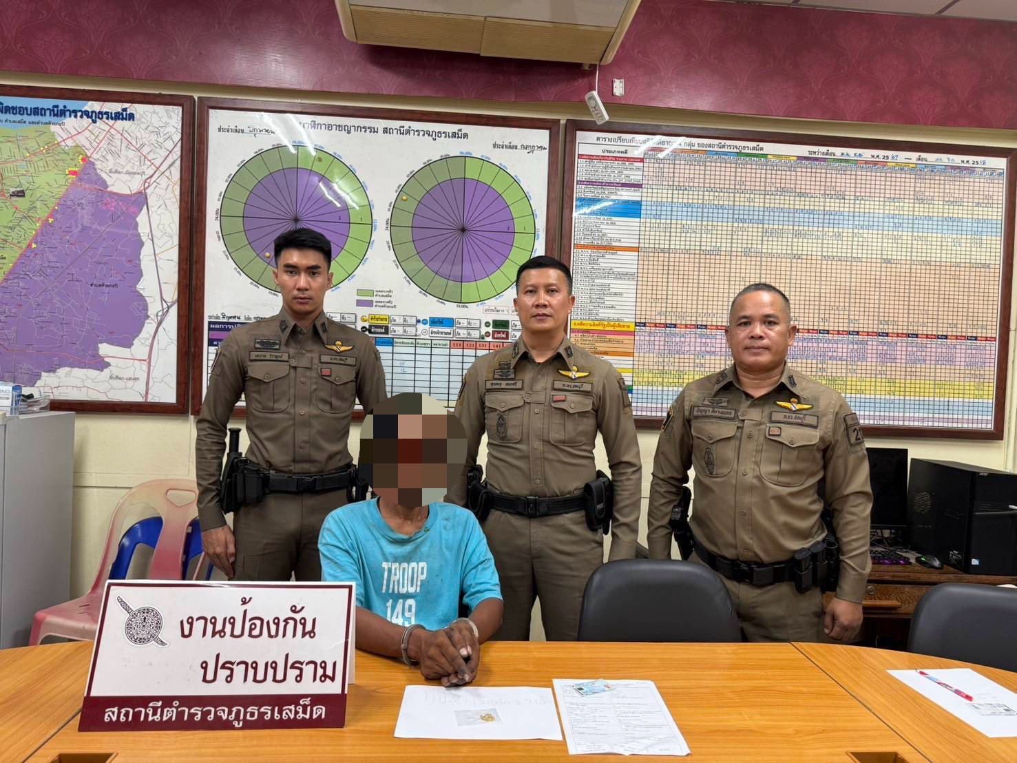 ภายใต้อำนวยการของ พ.ต.อ.ฐนพงศ์ โพธิ์ทิ ผกก.สภ.เสม็ด สั่งการให้ พ.ต.ท.สุรเชษฐ เอกนศรี รอง ผกก.ป.สภ.